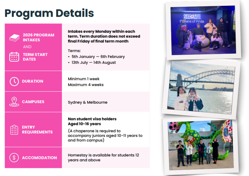プログラムはシドニーとメルボルンの2都市で開講されます。