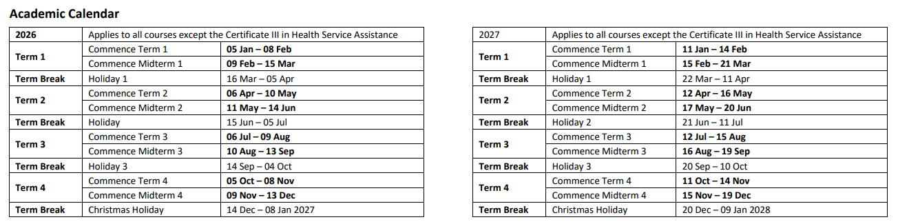 - Midterm 4:09 Nov – 13 Dec(Christmas:14 Dec – 08 Jan 2027)